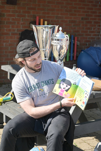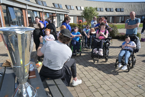 Fresh from their recent Elite League title win, the Belfast Giants paid a heartwarming visit to the Children’s Hospice on Tuesday afternoon, spending quality time with children, families and staff in the Hospice garden.